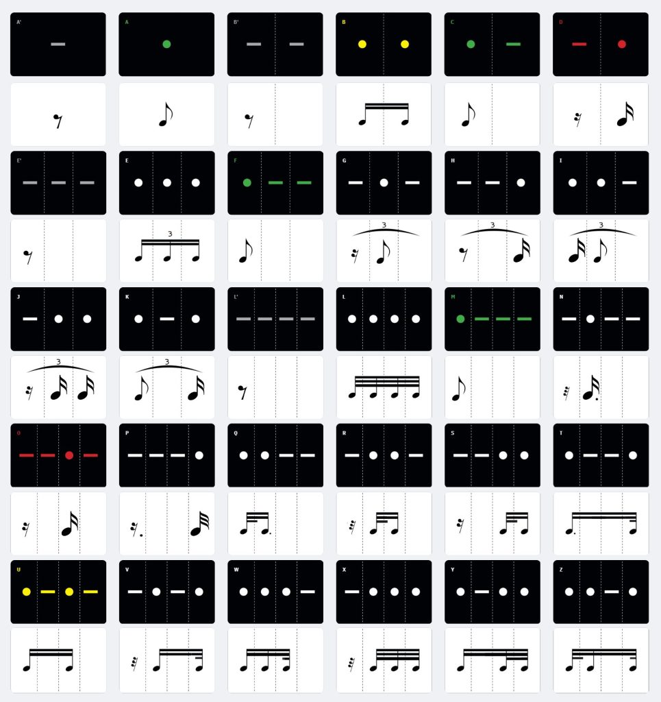 However, you can apply ABEL‘s rhythmic patterns to ANY other time values such as the whole note, the half note or even the eighth note or sixteenth note.