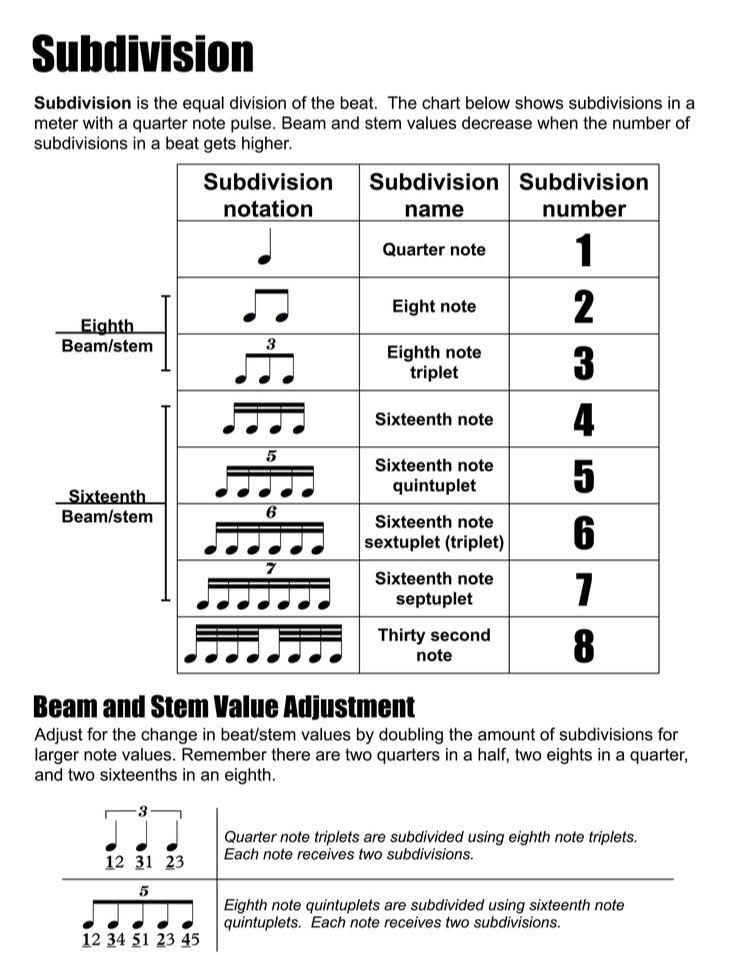 When you move up a level in the (sub)division, you double the number of rhythmic possibilities.